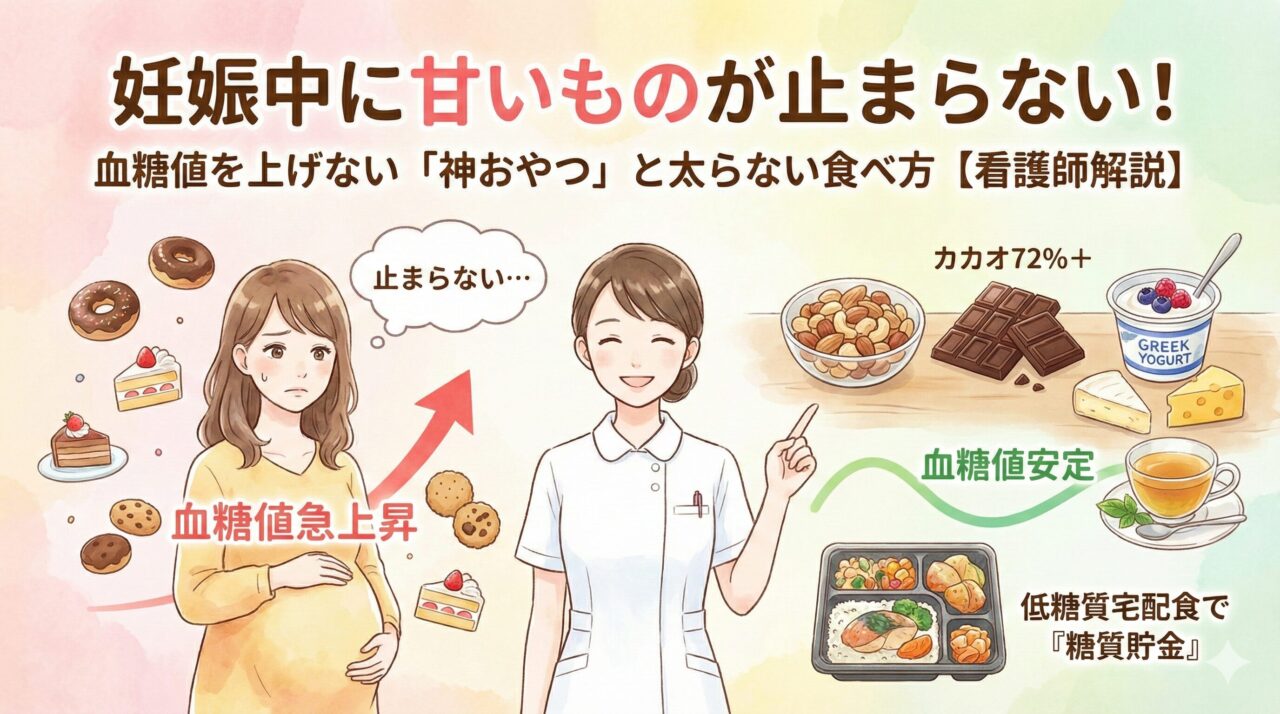 「仕事が終わってスーパーに寄ったけど、何を買えばいいか頭が回らない…」「帰宅してソファに座ったら最後、もうキッチンに立てない。」 妊娠中、仕事を続けながらの家...妊娠中に甘いものが止まらない!血糖値を上げない「神おやつ」と太らない食べ方【看護師解説】