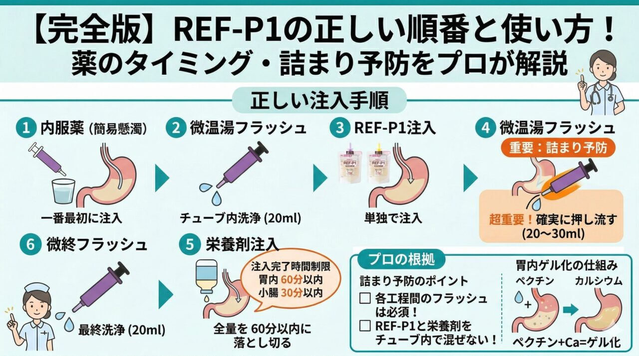 「このマニュアル、根拠は何ですか?」と先輩に聞いたら、「昔からこう決まっているから」「うちのやり方はこれだから」と一蹴された……。勉強熱心な看護師ほど、こんな...【完全版】REF-P1の正しい順番と使い方!薬のタイミング・詰まり予防をプロが解説