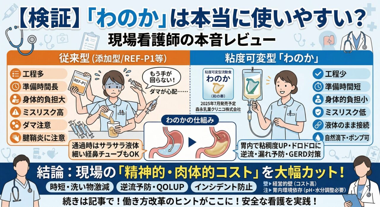 「朝の検温にケア、そこに経管栄養の準備……。もう手が回らない!」「ダマにならないようにかき混ぜる手間、なんとかならないの?」 病棟や施設の午前中、経管栄養の準備...なぜあなたの職場の経管栄養は「古い」のか?最新エビデンスに基づく製品使い分け術