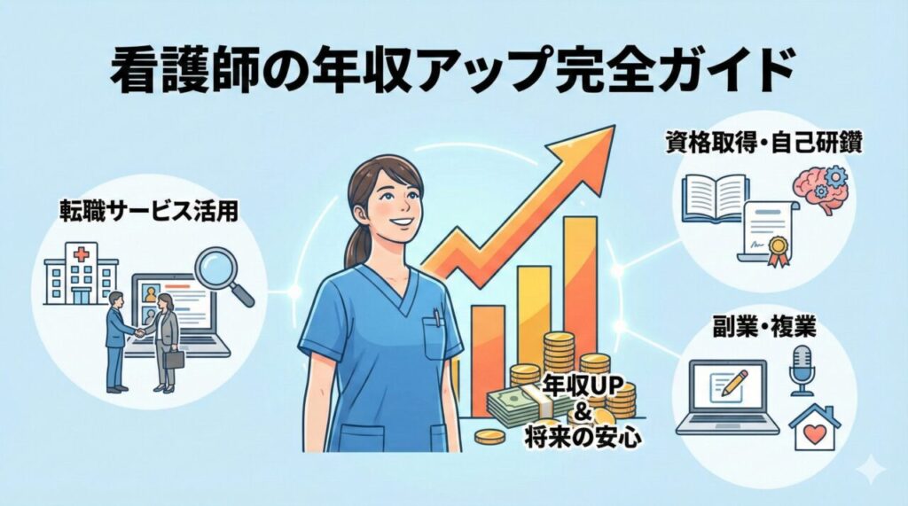 看護師の年収アップ完全ガイド|転職サービス活用法から副業・資格取得まで