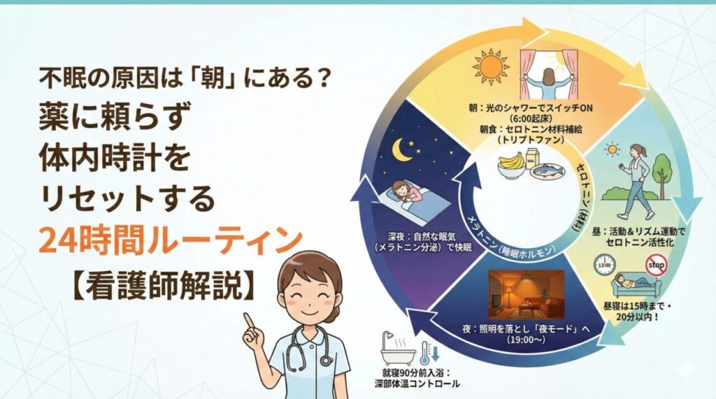 不眠の原因は「朝」にある?薬に頼らず体内時計をリセットする24時間ルーティン【看護師解説】