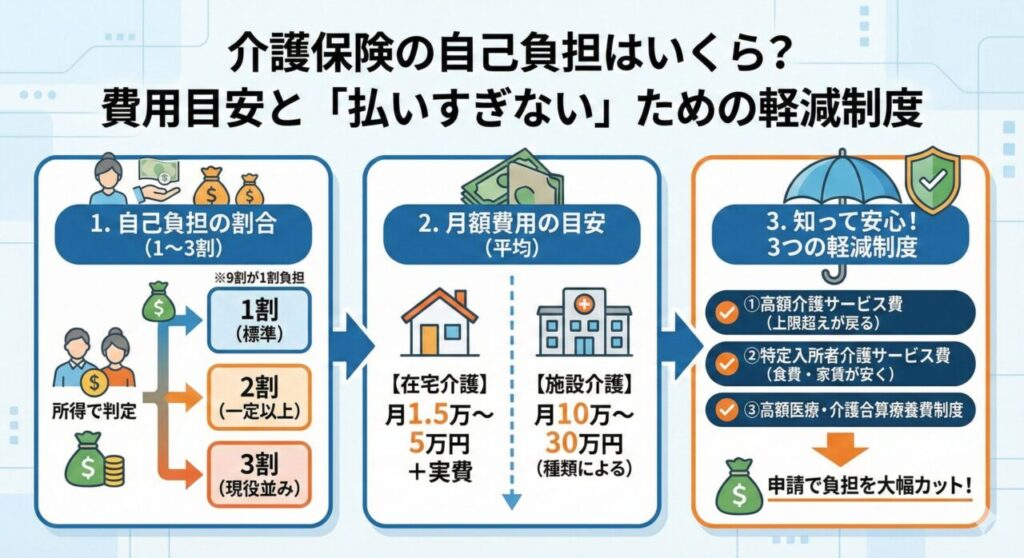 知らずに損をしないよう、介護保険の自己負担目安と、支払いを抑えるための軽減制度を今のうちにチェックしておきましょう。