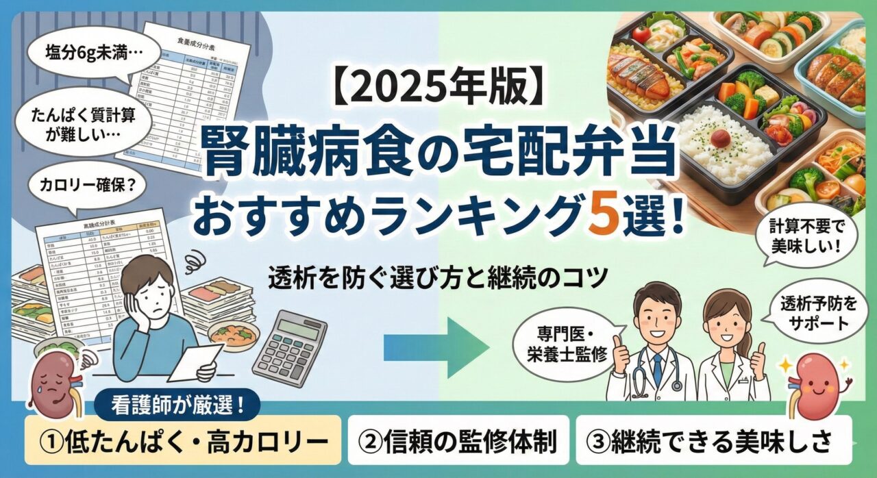 この記事では、看護師としての臨床経験と、実際の利用者の口コミに基づき、「腎臓の数値を守れる」かつ「続けられる美味しさ」を兼ね備えた宅配食サービスをランキング形式で紹介します。