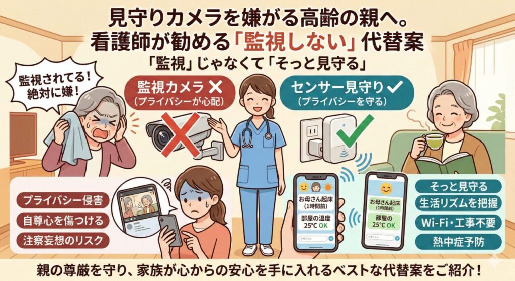 実は、カメラを一切使わずに「センサー」だけで、親の尊厳を守りながら安全を確認できる最新の解決策があります。