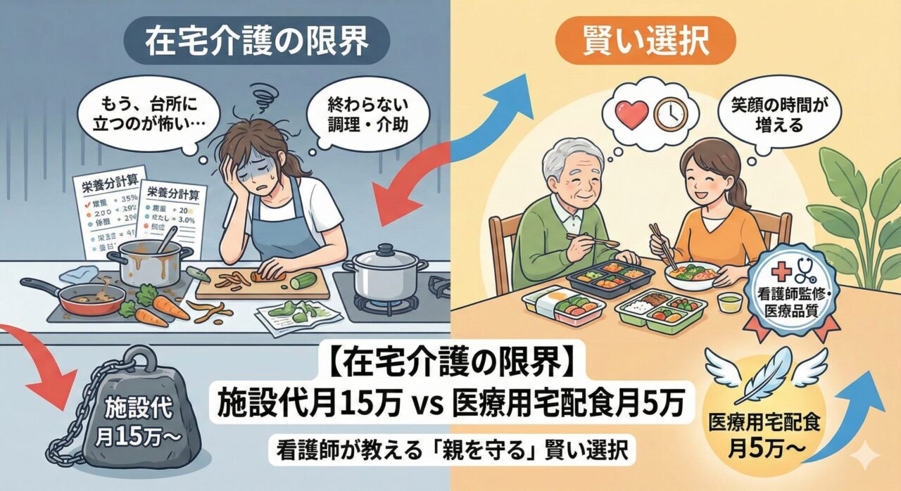 【在宅介護の限界】施設代月15万vs医療用宅配食月5万。看護師が教える「親を守る」賢い選択