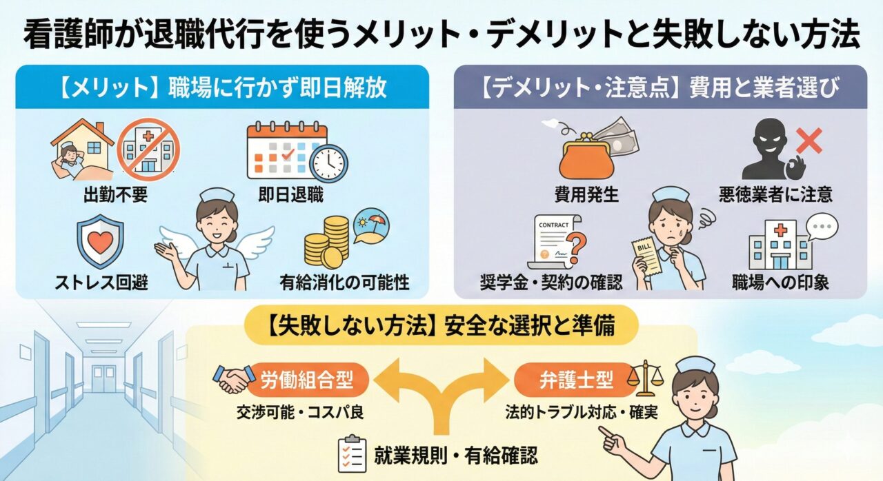看護師が退職代行を使うメリット・デメリットと失敗しない方法