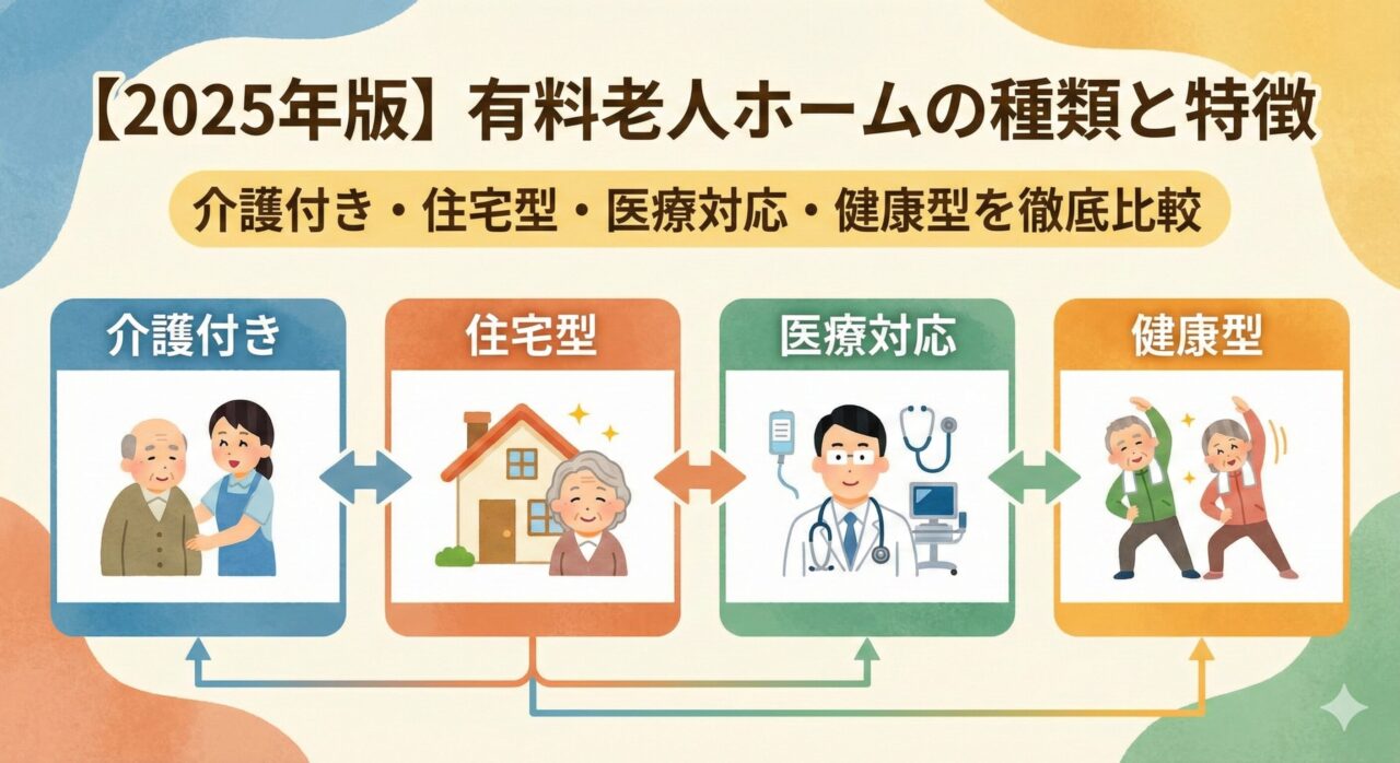 【2025年版】有料老人ホームの種類と特徴|介護付き・住宅型・医療対応・健康型を徹底比較