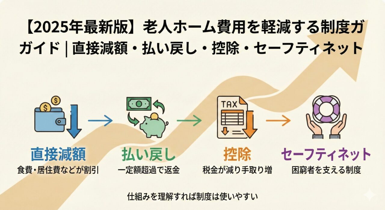 【2025年最新版】老人ホーム費用を軽減する制度ガイド|直接減額・払い戻し・控除・セーフティネット