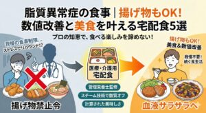 看護師が実食して厳選した、減塩でも驚くほど美味しい宅配食ランキングと、脂質異常症でも揚げ物やスイーツを楽しめる食事術をご紹介します。