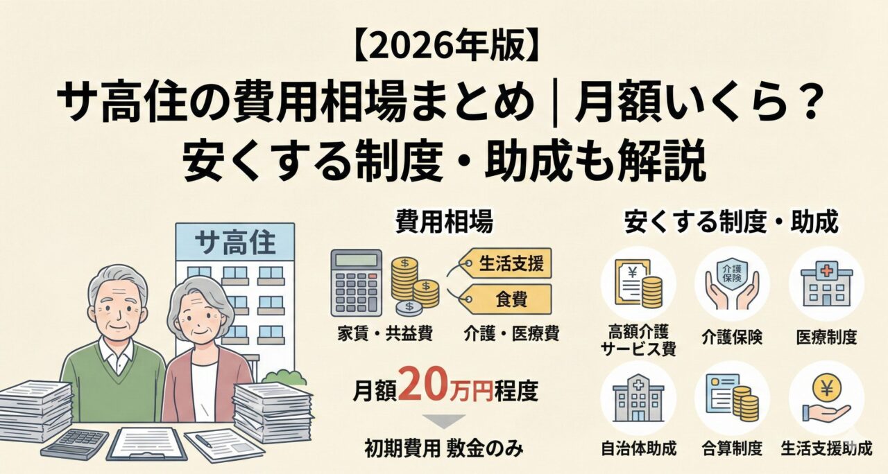 【2026年版】サ高住の費用相場まとめ|月額いくら?安くする制度・助成も解説