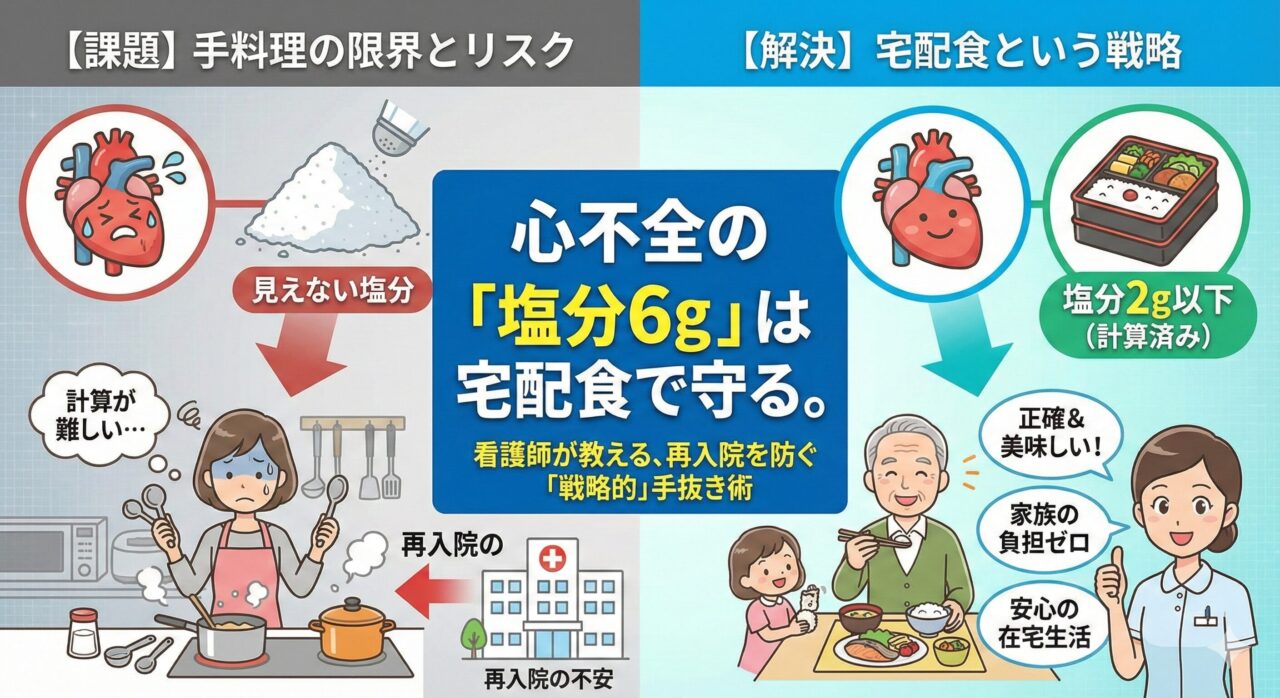 心不全の食事「塩分6g」は宅配食で守る。看護師が教える再入院を防ぐ「戦略的」手抜き術