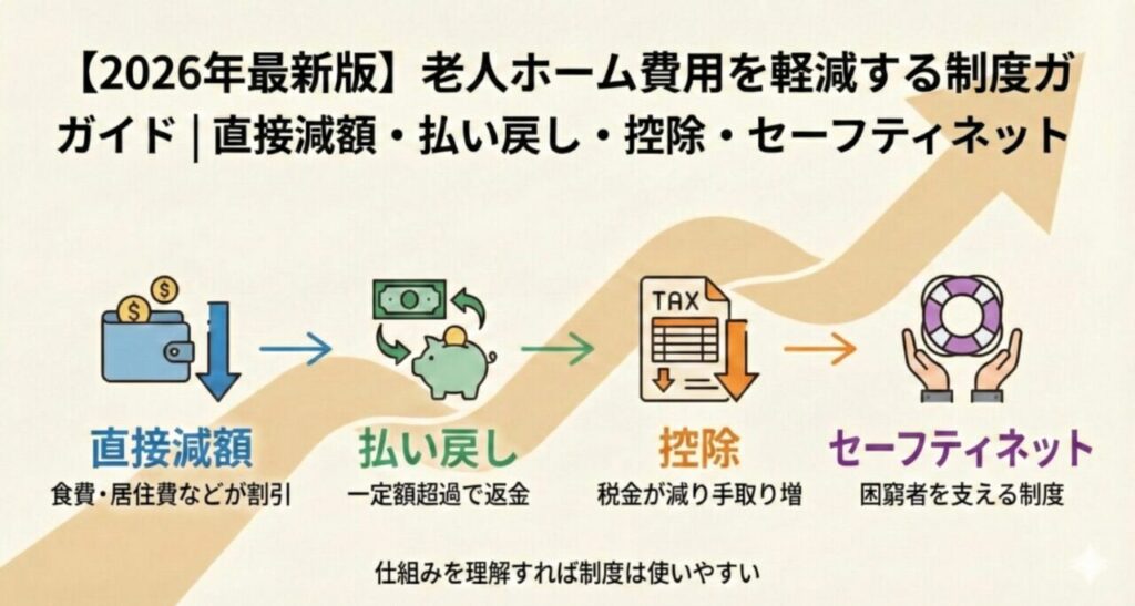 民間施設である有料老人ホームでも、公的な補助制度をフル活用すれば、負担を特養並みに近づけることも可能です。