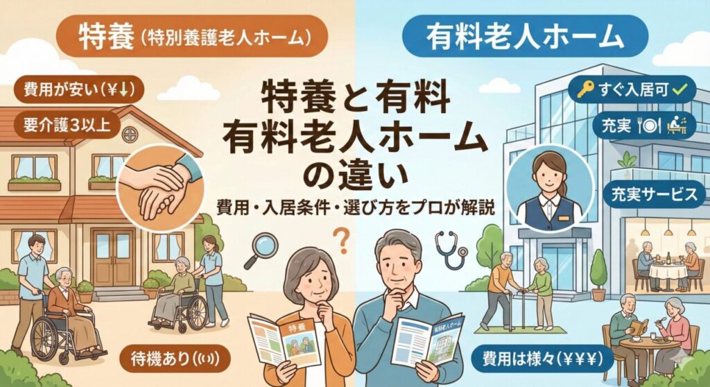 「特養と有料老人ホーム、どちらが親に合っているか迷っている」という方は、費用や入居条件の違いを徹底比較したこちらの記事も参考にしてください。